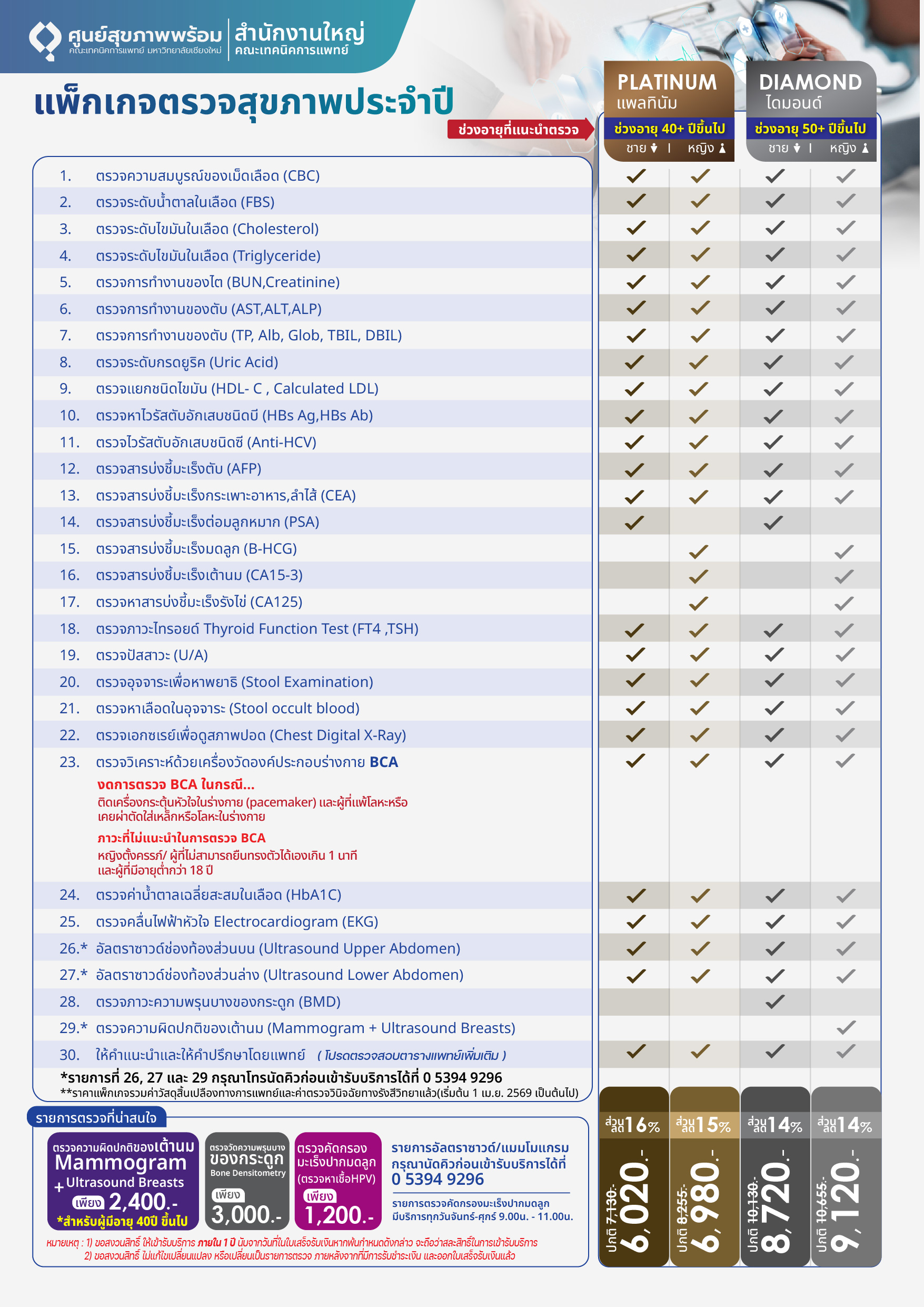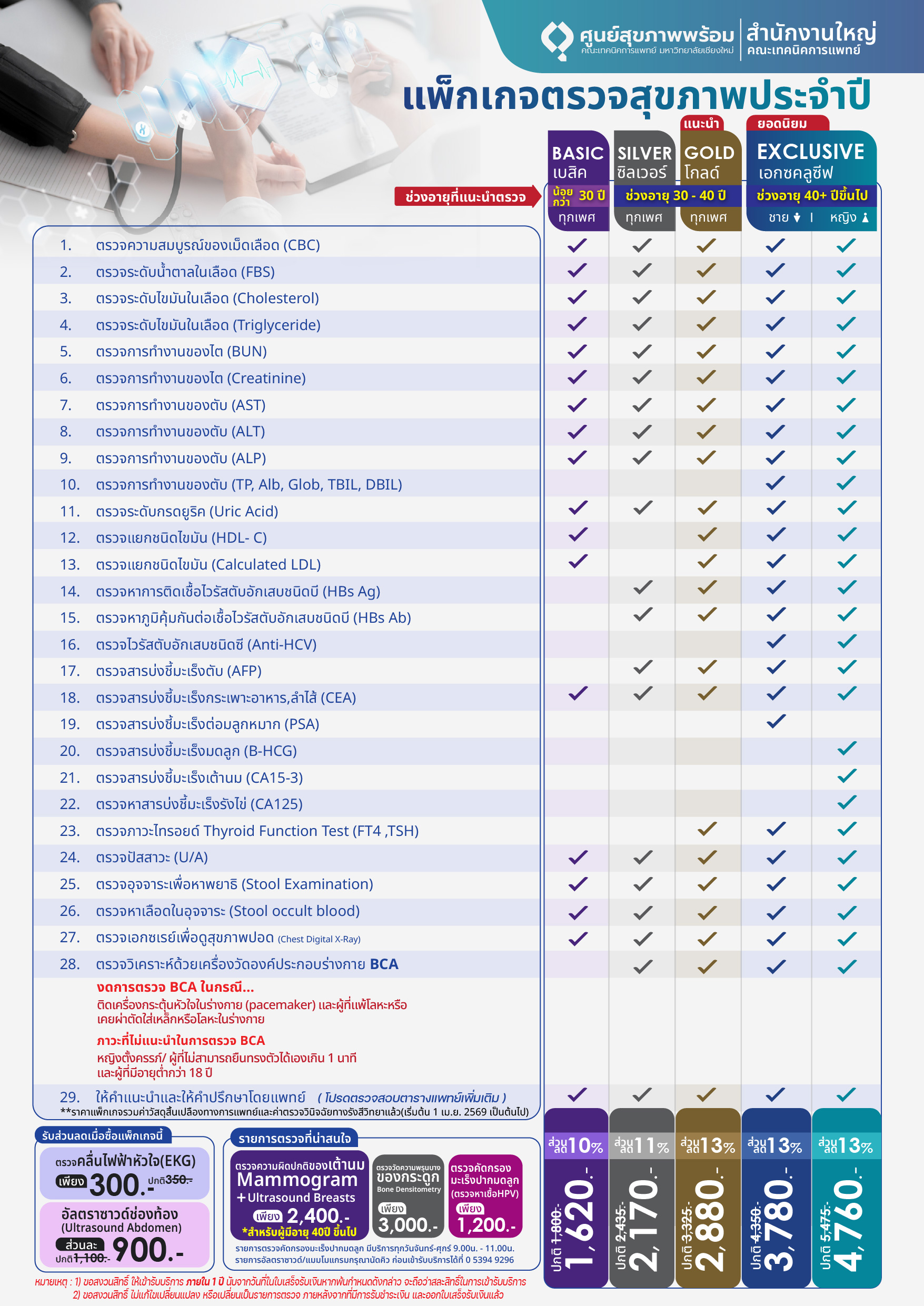 รวมแพคเกจตรวจสุขภาพ : สำนักงานใหญ่ คณะเทคนิคการแพทย์ Health Checkup Package