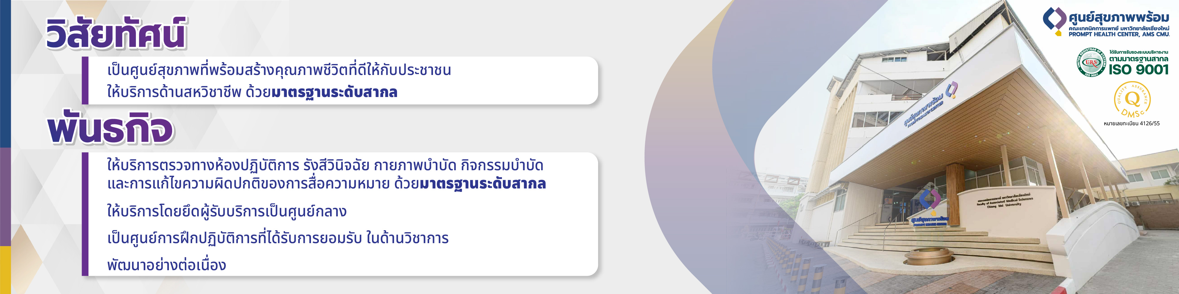 ศูนย์สุขภาพพร้อม สาขาศูนย์สุขภาพ มหาวิทยาลัยเชียงใหม่ ดำเนินการภายใต้ ศูนย์บริการเทคนิคการแพทย์คลินิก คณะเทคนิคการแพทย์ มหาวิทยาลัยเชียงใหม่ มีบริการกายภาพบำบัด กิจกรรมบำบัด ประเมินและส่งเสริมพัฒนาการเด็ก
