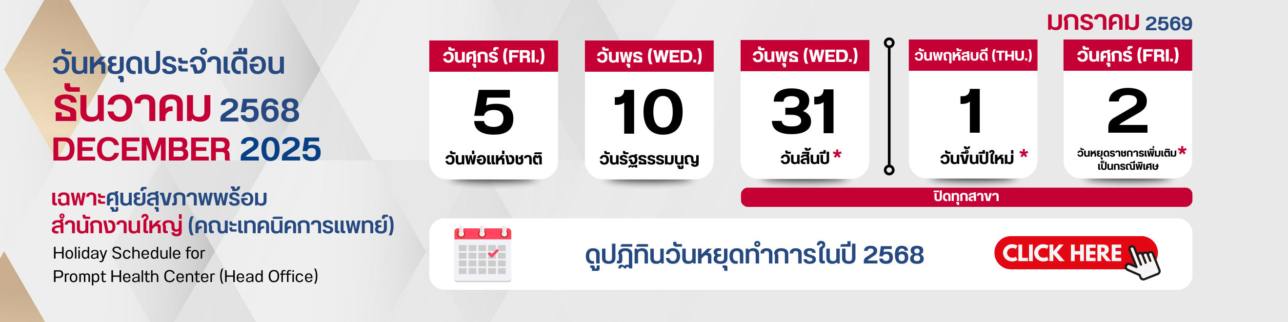 วันหยุดนักขัตฤกษ์ เวลา 08.00 - 16.00 น.
